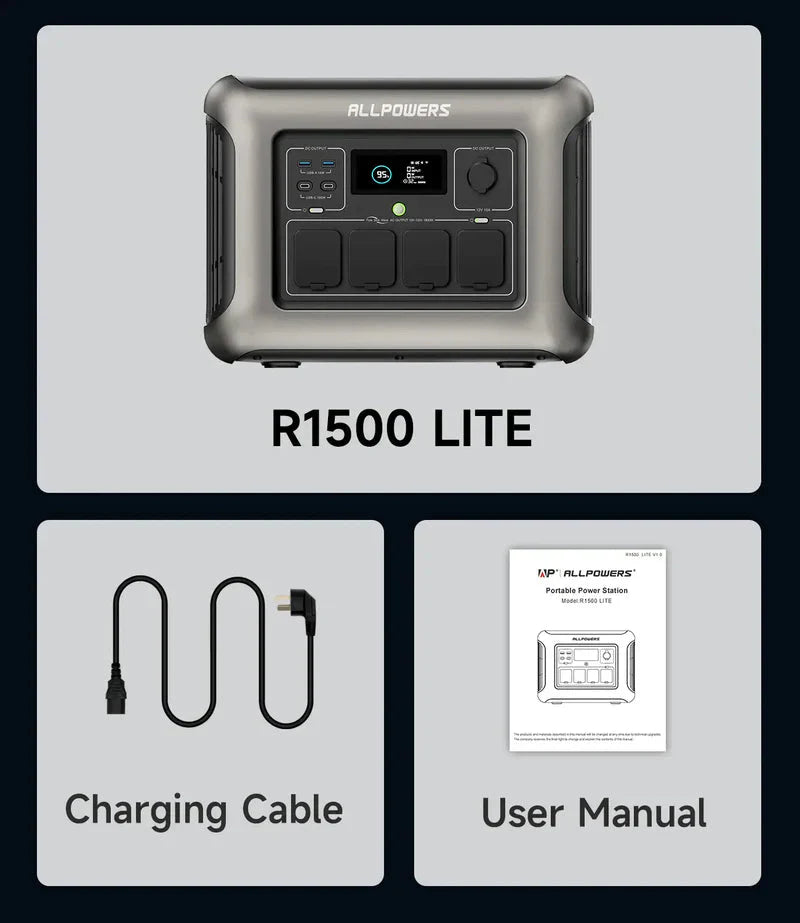 З вихідною потужністю 1600 Вт і ємністю 1056 Вт·год, R1500 LITE забезпечує надійне енергопостачання для кемпінгу, домашніх надзвичайних ситуацій та пригод на свіжому повітрі, і все це за безkonkurencjną ціною. Чи то для використання апарату CPAP вночі, забезпечення енергією кемпінгу, чи то для підтримки роботи необхідного обладнання під час відключення електроенергії, R1500 LITE — це доступне, легке та універсальне енергетичне рішення, на яке ви чекали.