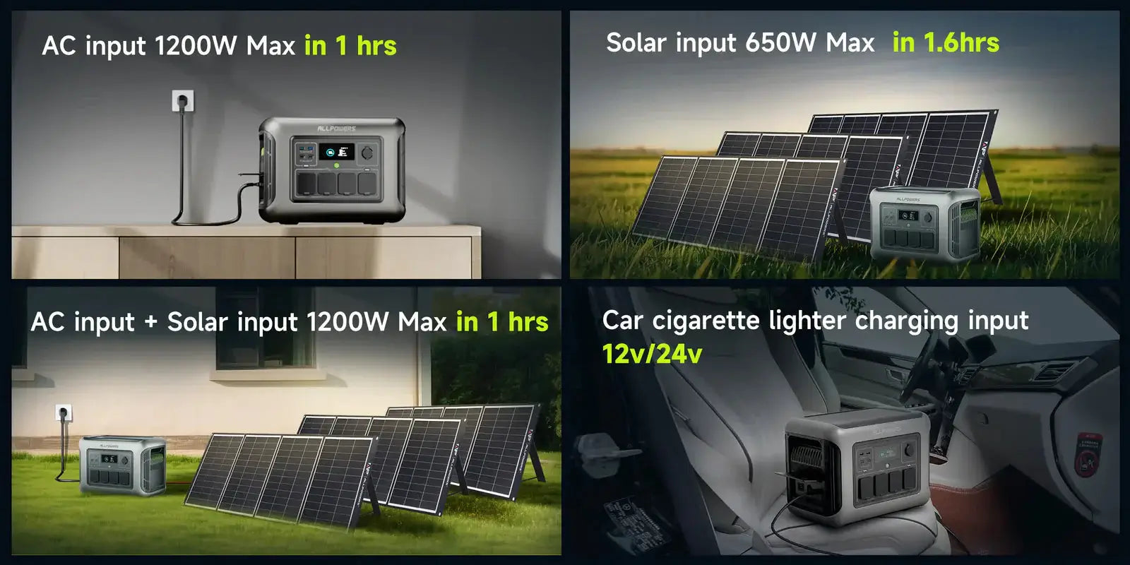 - 4 ways to charge (AC/Solar/Auto//Double AC+Solar);