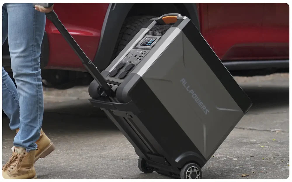 ALLPOWERS R4000 — це акумулятор високої ємності з літій-залізним фосфатним акумулятором, тому ви можете побоюватися, що його буде важко переміщати, але не хвилюйтеся. Portable Power R4000 має міцні ролики, схожі на валізи, тому навіть жінки можуть легко переміщати його, незважаючи на вагу 45 кг. Він має тонкий профіль для зручного зберігання та міцну конструкцію, яка витримує навантаження до 45 кг. ALLPOWERS R4000 виконує функцію портативного акумулятора для домашнього використання, але також корисний для кемпінгу та ночівлі в автомобілі.