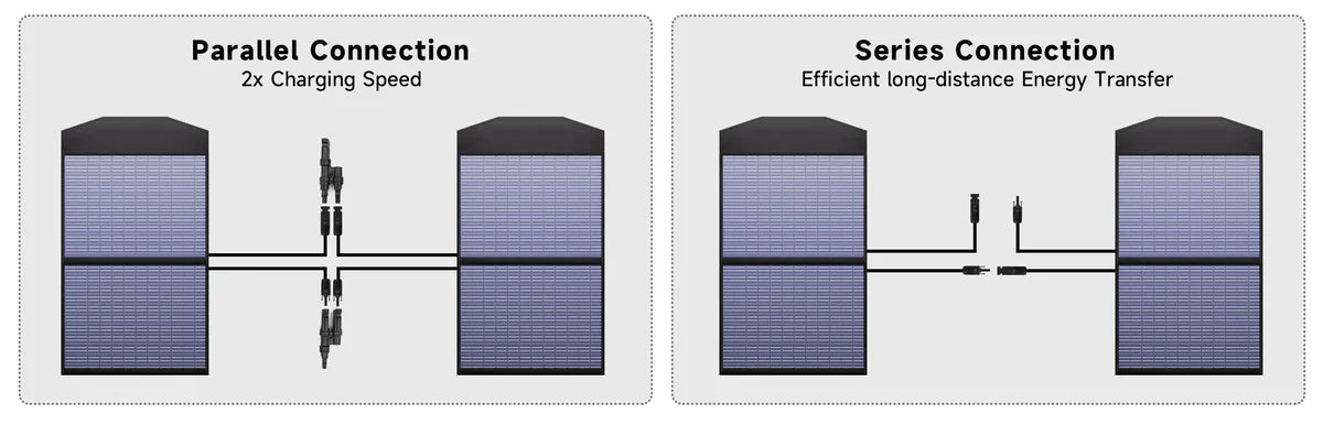 Підключаючи кілька сонячних панелей паралельно або послідовно, ви можете отримати більшу потужність та напругу.