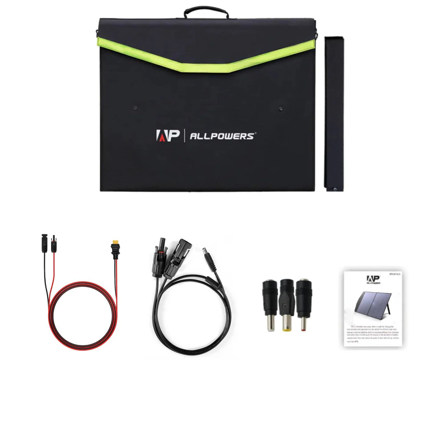 Складна сонячна панель ALLPOWERS потужністю 100 Вт сумісна з більшістю сонячних генераторів та портативних електростанцій на ринку. Комплект портативної сонячної панелі включає конектори різного розміру для портативних генераторів (сонячний конектор для Anderson / сонячний конектор для DC).